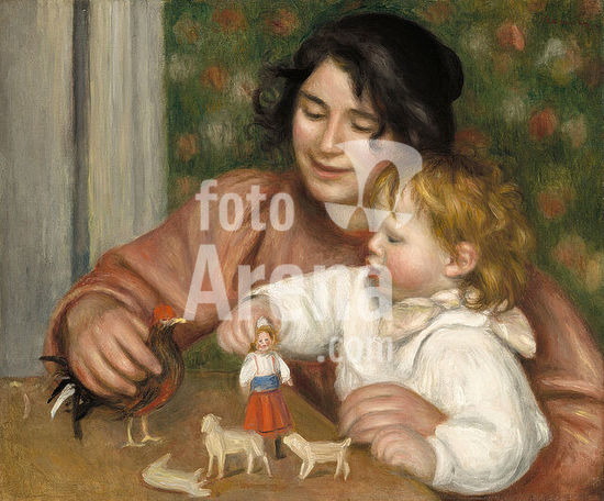 alb3724719 Child with Toys - Gabrielle and the Artist's Son, Jean. Dated: 1895-1896. Dimensions: overall: 54.3 x 65.4 cm (21 3/8 x 25 3/4 in.) framed: 65.7 x 76.7 x 3.5 cm (25 7/8 x 30 3/16 x 1 3/8 in.). Medium: oil on canvas. Museum: National Gallery of Art, Washington DC. Author: AUGUSTE RENOIR.