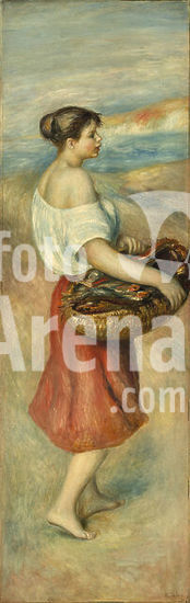 alb3736286 Girl with a Basket of Fish. Dated: c. 1889. Dimensions: overall: 130.7 x 41.8 cm (51 7/16 x 16 7/16 in.) framed: 151.1 x 61.9 x 5.1 cm (59 1/2 x 24 3/8 x 2 in.). Medium: oil on canvas. Museum: National Gallery of Art, Washington DC. Author: AUGUSTE RENOIR.