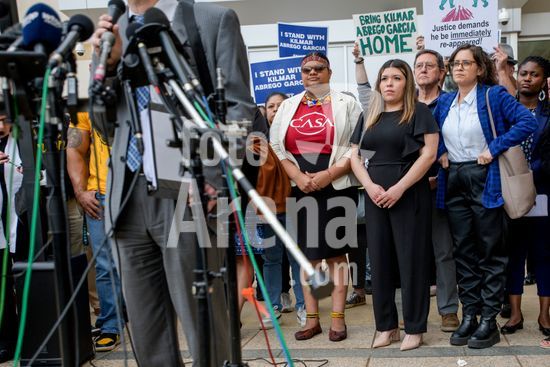 ny150425193612 Jennifer Vasquez Sura, center, the wife of Kilmar Armando Abrego Garcia, listens as her attorney speaks at a news conference following a hearing outside a federal courthouse in Greenbelt, Md., April 15, 2025. A federal judge scolded the Trump administration on Tuesday for dragging its feet in complying with a Supreme Court order that directed the White House to ?facilitate? the release of Abrego Garcia, who was wrongly deported to a prison in El Salvador last month. (Haiyun Jiang/The New York Times/Fotoarena)
