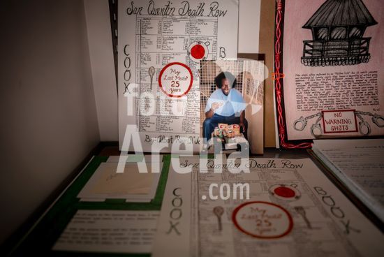ny050425221111 A photo of death row prisoner Albert Jones on display at the New York International Antiquarian Book Fair, in New York on Thursday, April 3, 2025. Jones?s 11 books describe life in prison., his victims? relatives say his family should not benefit from a sale of his story. (Angelina Katsanis/The New York Times/Fotoarena)