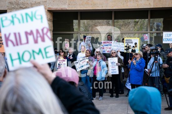 ny150425193610 Protesters gather during a hearing in the case of Kilmar Armando Abrego Garcia, outside a federal courthouse in Greenbelt, Md., April 15, 2025. A federal judge scolded the Trump administration on Tuesday for dragging its feet in complying with a Supreme Court order that directed the White House to ?facilitate? the release of Abrego Garcia, who was wrongly deported to a prison in El Salvador last month. (Haiyun Jiang/The New York Times/Fotoarena)