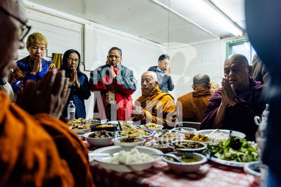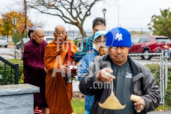 ny151125163613 Laypeople offer food to U Pyinya Zawta and other monks during a d?na, or alms-giving ritual, at Metta Parami Temple in Buffalo, N.Y., on Nov. 9, 2025. Members of Buffalo?s Burmese community gathered to welcome home a Buddhist monk and pro-democracy activist who had recently been released from a Myanmar prison after almost a year. (Jalen Wright/The New York Times/Fotoarena)