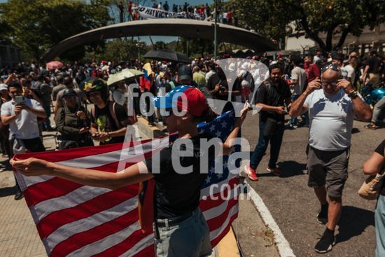 ny200126204317 Evelis Cano Perez speaks with a police mediator during a standoff with police officers as families of political prisoners camp outside of the National Police Zone 7 Detention Center in Caracas, on Tuesday, Jan. 20, 2026. To date, only 143 of Venezuela?s estimated nearly 900 political prisoners have been released, according to a leading human rights group, Foro Penal. (The New York Times)