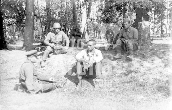 975_05_SOV-B-4557 German soldiers who had been covering the retreat of their unit surrender after disclosed from a grove of woods by soviet red army men.