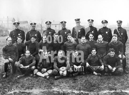 990_05_3-Sport-FB-A-CU_13HR Ossining, New York: c. 1929 Number 82,064 carries the football for the Sing Sing prisoners football team as they play aginst the Naval Militia team in Ossining. Sing Sing won the game, 33-0.
