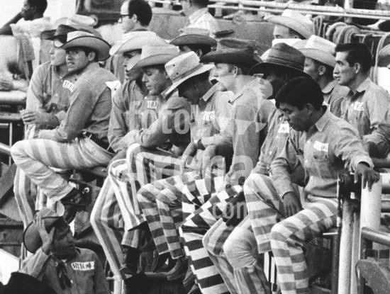 990_05_3-Sport-Rodeo_12HR McAlester, Oklahoma: September. 1971 Prisoner contestants participating in the annual rodeo held at the Oklahoma State Penititentiary.