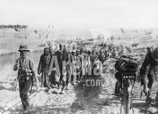 990_05_4-WWI-POW-CenPow_5HR Kara Tepe, Turkey: May 28, 1918 Turkish prisoners of war who were captured by the British on their advance through Mesopotamia.