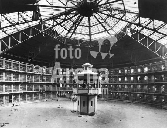 990_05_7-Crime-Pris-Int_7HR Crest Hill, Illinois: April 7, 1928 The new prison with its circular cell layout and the central guard tower at Stateville Correctional Center follows the panopticon design by British philosopher and prison reformer Jeremy Bentham. © Underwood Archives / The Image Works
