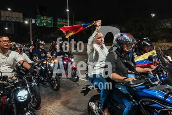 Juan Pablo Guanipa, a centrist opposition party leader, waves the flag of Venezuela as a caravan of supporters transport him following his release from prison in Caracas on Sunday, Feb. 8, 2026. Hours after releasing Guanipa, the Venezuelan interim government took him back into custody after it said he breached the terms of his release conditions. (The New York Times)