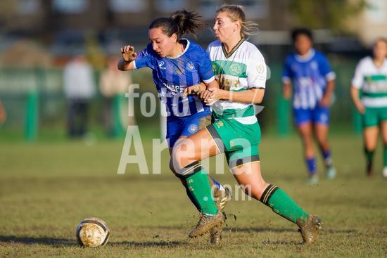 2836346 Londres, Reino Unido. 2 de novembro de 2025. Hana Lelani (11) do Actonians e Georgie Lewin (6) do QPR disputam a bola durante a partida da FA WNL SED1 entre Actonians LFC e QPR FC Women no North Greenford FC em Londres, Inglaterra. (Mike Turner / SPP) (Mike Turner / SPP)