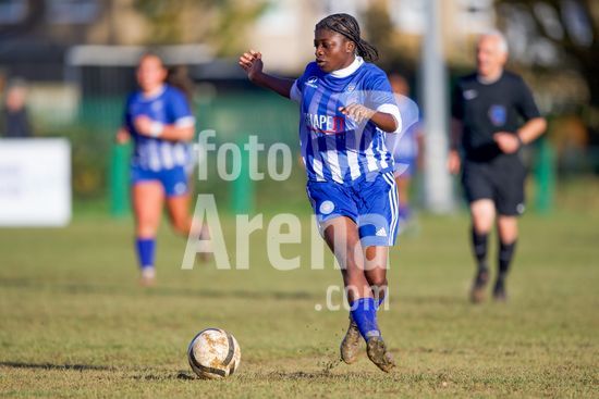2836349 Londres, Reino Unido. 2 de novembro de 2025. Abigail Kargbo (11) do Actonians conduz a bola pelo meio-campo durante a partida da FA WNL SED1 entre Actonians LFC e QPR FC Women no North Greenford FC em Londres, Inglaterra. (Mike Turner / SPP) (Mike Turner / SPP)