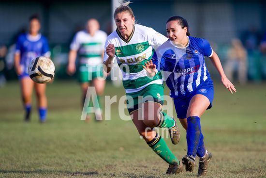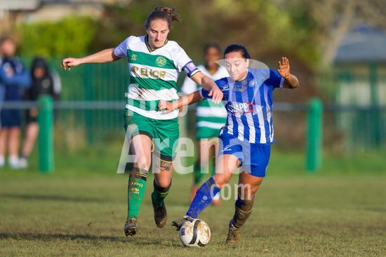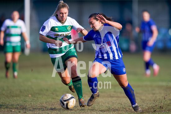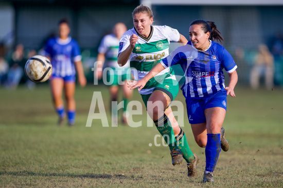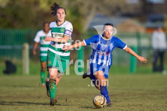 2836383 Londres, Reino Unido. 2 de novembro de 2025. Georgie Lewin (6) do QPR e Hana Lalani (9) do Actonians disputam a bola durante a partida da FA WNL SED1 entre Actonians LFC e QPR FC Women no North Greenford FC em Londres, Inglaterra. (Mike Turner / SPP) (Mike Turner / SPP)