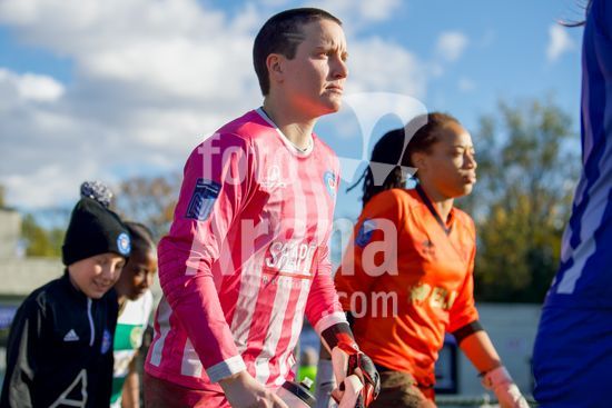 2836362 Londres, Reino Unido. 2 de novembro de 2025. A goleira do Actonians (1), Elisa Dogor, entra em campo antes da partida da FA WNL SED1 entre Actonians LFC e QPR FC Women no North Greenford FC em Londres, Inglaterra. (Mike Turner / SPP) (Mike Turner / SPP)