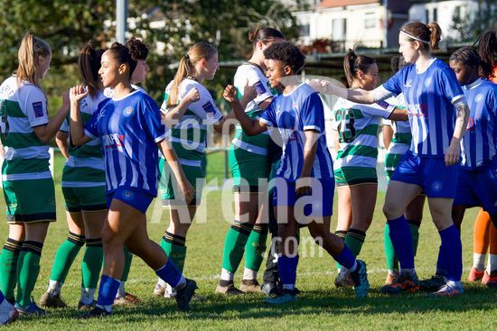 2836363 Londres, Reino Unido. 2 de novembro de 2025. Jogadoras do Actonians LFC e do QPR FC Women se cumprimentam antes da partida da FA WNL SED1 entre Actonians LFC e QPR FC Women no North Greenford FC em Londres, Inglaterra. (Mike Turner / SPP) (Mike Turner / SPP)