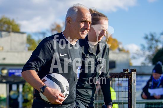 2836365 Londres, Reino Unido. 2 de novembro de 2025. O arbitro Philip Mayer entra em campo antes da partida da FA WNL SED1 entre Actonians LFC e QPR FC Women no North Greenford FC em Londres, Inglaterra. (Mike Turner / SPP) (Mike Turner / SPP)