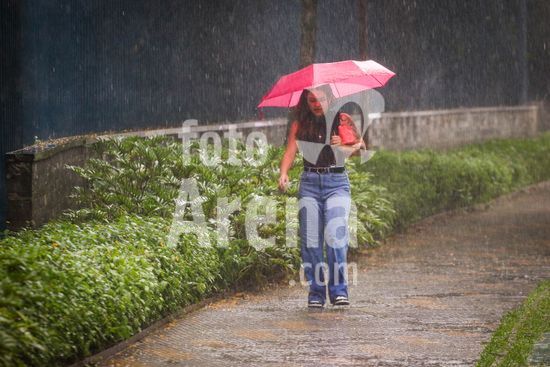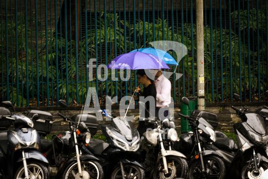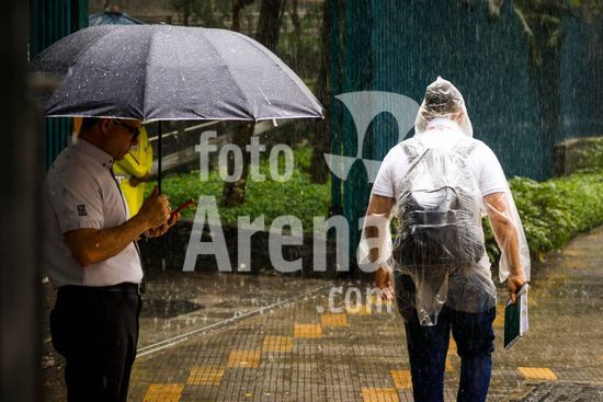 2844326 Uma forte chuva atinge a cidade de São Paulo na tarde desta segunda-feira (17). Na foto pessoa se protege da chuva na região da Vila Olímpia na zona sul da capital paulista.