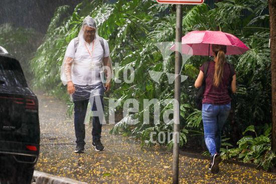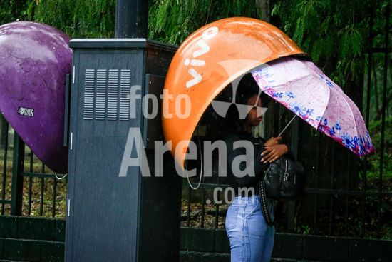 2844325 Uma forte chuva atinge a cidade de São Paulo na tarde desta segunda-feira (17). Na foto pessoa se protege da chuva na região da Vila Olímpia na zona sul da capital paulista.