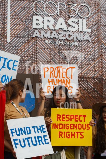 2845081 Ativistas do "Voices of the Global South" protestam contra o uso de combustíveis fósseis e pedem respeito aos direitos de indígenas e quilombolas, na entrada da blue zone da COP 30 em Belém no Pará. Voices of the Global South refere-se às perspectivas coletivas de países da América Latina, África, Ásia e Oceania, que estão influenciando cada vez mais os diálogos globais sobre temas como mudanças climáticas, desigualdade econômica e governança multilateral.