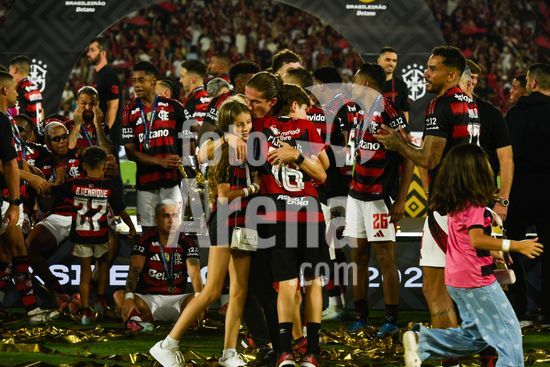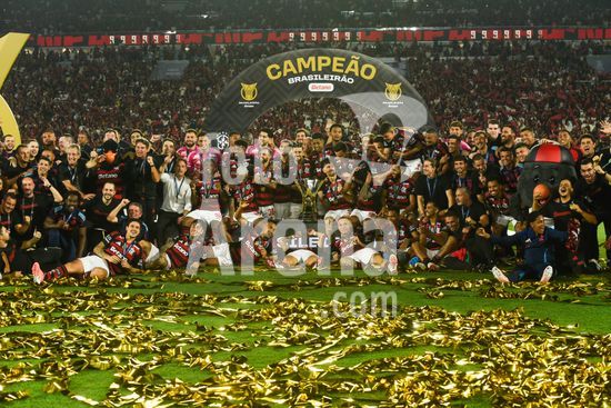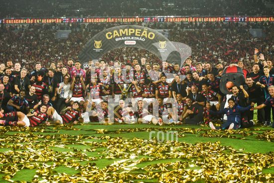 2852941 Clube Regatas Flamengo é o campeão Brasileiro 2025, o clube sagrou-se campeão após vitória sobre o Ceará no estádio do Maracanã, jogadores e comissão técnica levantaram a taça e comemoraram com amigos e familiares.