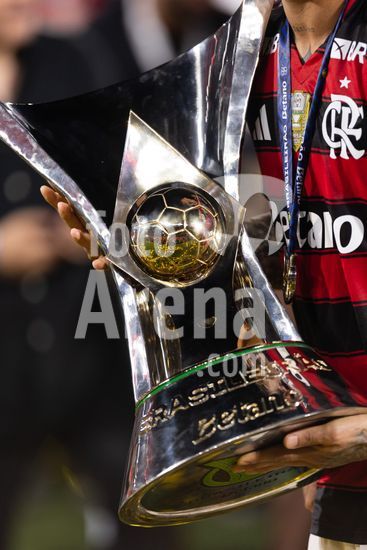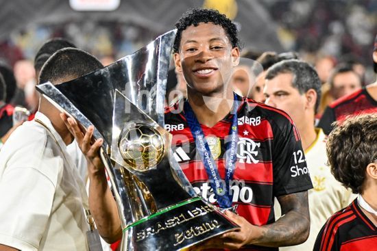 2852952 Flamengo x Ceará realizada no Estádio do Maracanã pelo Campeonato Brasileiro 2025, serie A, dela 37ª rodada, na noite desta quarta-feira (03), no Rio de Janeiro, RJ.Pedro com a taca