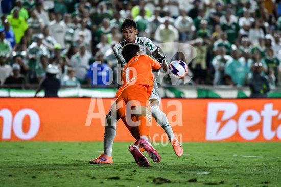 2866894 Cecchini da Portuguesa e Agustín Giay do Palmeiras durante partida entre Portuguesa x Palmeiras, válida pela primeira rodada do Campeonato Paulista de Futebol 2026, neste sábado (10), no Estádio do Canindé, SP.