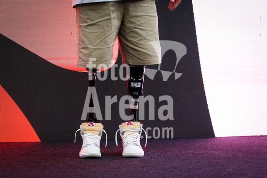 2896536 O prefeito da cidade de São Paulo, Ricardo Nunes concede entrevista coletiva nesta segunda-feira (02) no Hall da prefeitura, sobre mundial de Skate em São Paulo (STU) nas modelidades Street e Park. Participaram do evento, o CEO da STU Skateboard, Diogo Castelão, o secretário de Esportes do município de São Paulo, Rogério Lins, a skatista e Letícia Bufoni e o Presidente do Word Skate, Sabatino Aracu. Na foto, detalhe das próteses do paraskatista brasileiro, hexacampeão do Circuito STU de Paraskate (Park), Vini Sardi.
