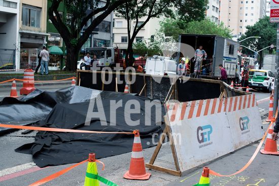 2896552 Um buraco de 15 metros quadrados se abriu na rua Consolação, neste segunda-feira (2), em São Paulo. Na foto, o buraco coberto com uma lona.