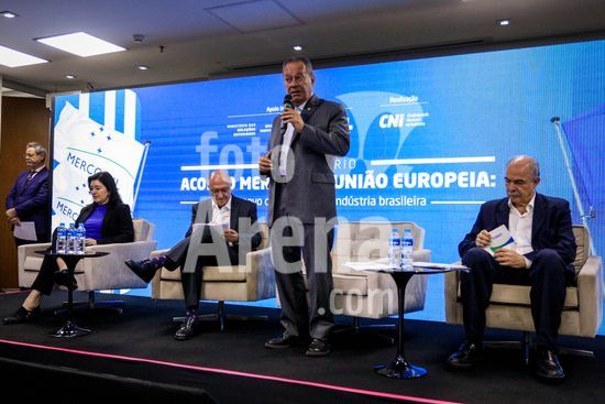 2912631 O vice-presidente e ministro de Estado do Desenvolvimento, Indústria, Comércio e Serviços (MDIC), Geraldo Alckmin juntamente com o presidente do BNDES, Aloizio Mercadante participam nesta quarta-feira (27) na sede da Confederação Nacional da Indústria (CNI), na zona sul de São Paulo, do Seminário Acordo Mercosul União Europeia. O objetivo do seminário é oferecer uma visão completa e qualificada sobre o Acordo Mercosul-União Europeia. Na foto, presidente da Confederação Nacional da Indústria (CNI), Ricardo Alban durante a abertura do evento.