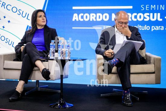 2912638 O vice-presidente e ministro de Estado do Desenvolvimento, Indústria, Comércio e Serviços (MDIC), Geraldo Alckmin juntamente com o presidente do BNDES, Aloizio Mercadante participam nesta quarta-feira (27) na sede da Confederação Nacional da Indústria (CNI), na zona sul de São Paulo, do Seminário Acordo Mercosul União Europeia. O objetivo do seminário é oferecer uma visão completa e qualificada sobre o Acordo Mercosul-União Europeia. Na foto, a ministra do Planejamento e Orçamento, Simone Tebet e Geraldo Alckmin, participam da abertura do Seminário.