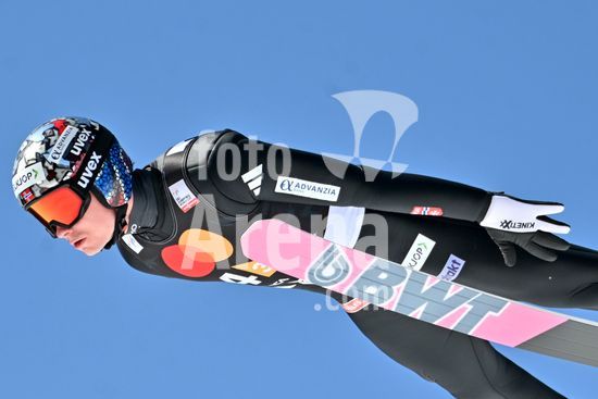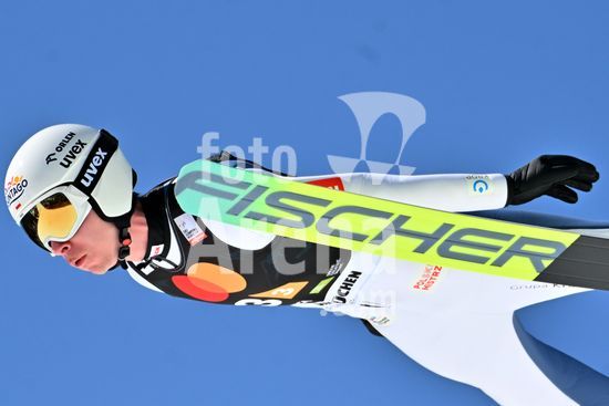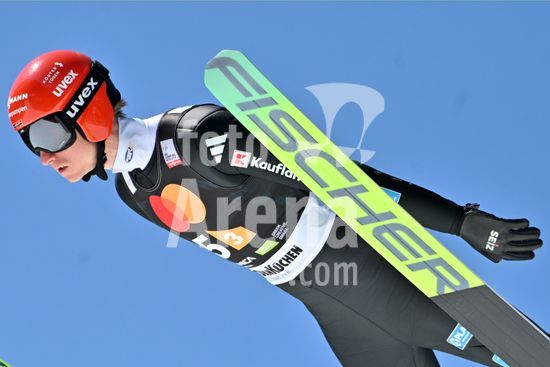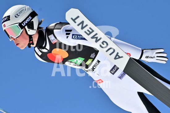 990_05_6-Child-Spt_17HR Highland Park, Illinois: c. 1928 A young skier shows off her form on a jump at the Exmoor Country Club.