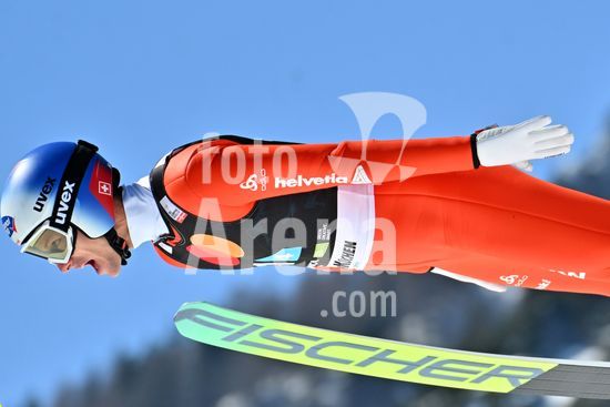 990_05_6-Child-Spt_15HR Davos, Switzerland c. 1928 Two children having fun skiing on the slopes.