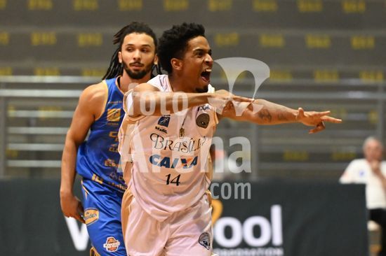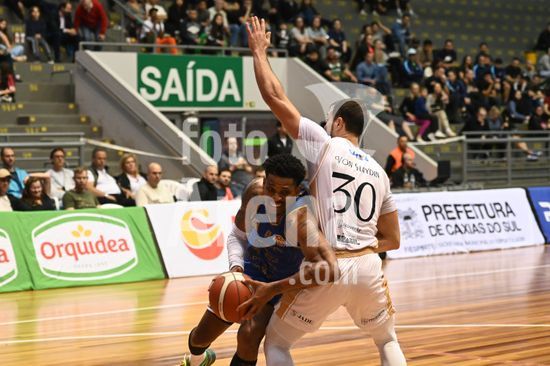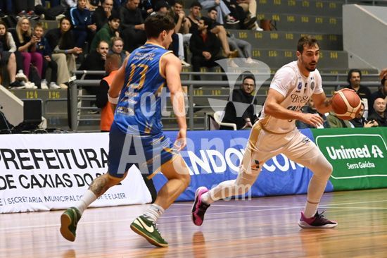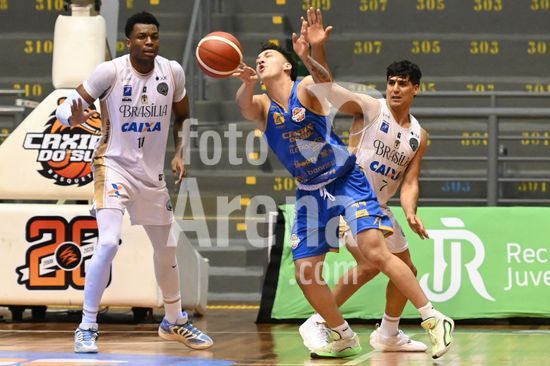 2836459 Imagens da partida de basquete entre o Caxias do Sul Basquete e o Basquete Brasília, disputada no Ginásio do SESI, válida pela quinta rodada do Caxias do Sul Basquete no NBB 25/26. Corvalan, do Brasília. Caxias do Sul, RS (05).