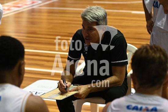 2836494 Imagens da partida de basquete entre o Caxias do Sul Basquete e o Basquete Brasília, disputada no Ginásio do SESI, válida pela quinta rodada do Caxias do Sul Basquete no NBB 25/26. Dedé Barbosa, técnico do Brasília. Caxias do Sul, RS (05).