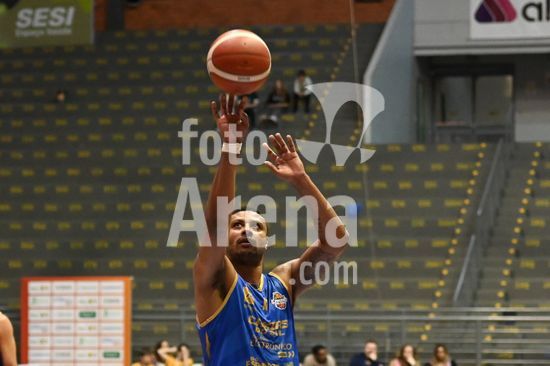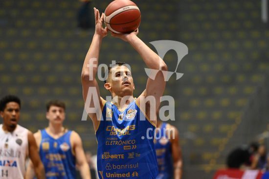 2836484 Imagens da partida de basquete entre o Caxias do Sul Basquete e o Basquete Brasília, disputada no Ginásio do SESI, válida pela quinta rodada do Caxias do Sul Basquete no NBB 25/26. Corvalan marca mais um ponto em arremesso livre. Caxias do Sul, RS (05).