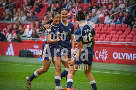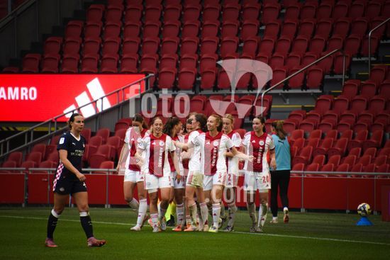 2838133 O Ajax comemora o gol devido Danique Tolhoek (9 Ajax) durante o jogo entre as mulheres do Ajax e do PSV no estadio Johan Cruijff, Amsterda, Holanda. (Arne van der Ben / SPP)