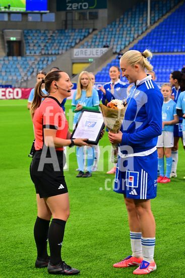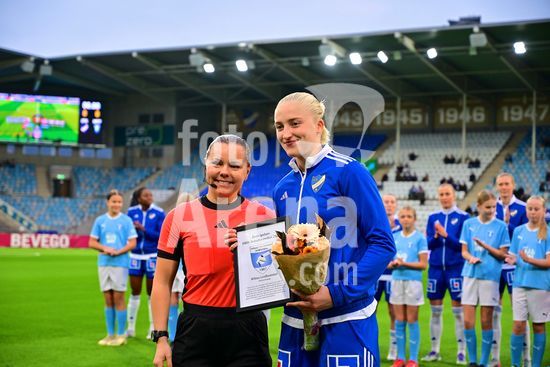 2838121 Wilma Leidhammar (10 IFK Norrkoping) foi eleita a jogadora do ano pela arbitragem antes da partida do Campeonato Sueco OBOS Damallsvenskan, que acontecera em 8 de novembro de 2025 entre IFK Norrkoping e Malmo FF na Platinumcars Arena em Norrkoping, Suecia. (Peter Sonander/SPP)