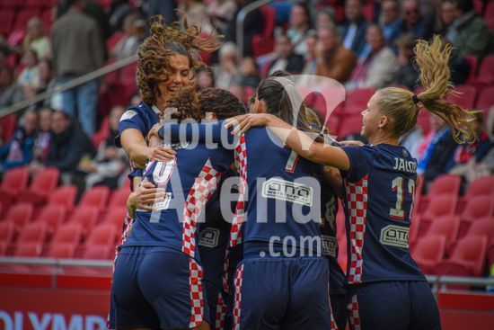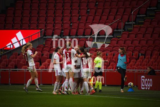 2838139 O Ajax comemora o gol devido Danique Tolhoek (9 Ajax) durante o jogo entre as mulheres do Ajax e do PSV no estadio Johan Cruijff, Amsterda, Holanda. (Arne van der Ben / SPP)