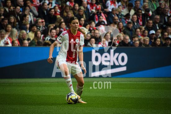 2838124 Louise van Oosten (18 Ajax) antes do jogo entre Ajax e PSV feminino no estadio Johan Cruijff, Amsterda, Holanda. (Arne van der Ben / SPP)
