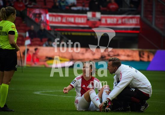 2838146 Nurija van Schoonhoven (27 Ajax) se machucou durante o jogo entre Ajax e PSV feminino no estadio Johan Cruijff, Amsterda, Holanda. (Arne van der Ben / SPP)