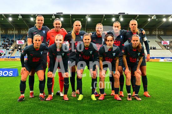 2838153 As duas equipes se alinharam antes da partida da Liga Sueca OBOS Damallsvenskan, em 8 de novembro de 2025, entre IFK Norrkoping e Malmo FF, na Platinumcars Arena, em Norrkoping, Suecia. (Peter Sonander/SPP)