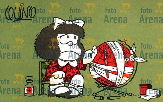 mafaldaymundoenfermo ILUSTRAÇÃO DA PERSONAGEM MAFALDA, DA TURMA DA MAFALDA.Mafalda y mundo enfermo.Descrição: Mafalda e mundo doente.Mafalda triste com o planeta Terra doente e enfaixado.