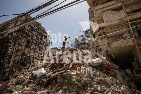 ny140426105911 A Lebanese worker tosses a hammer inside a destroyed building as workers and relatives continue a sixth day of searching for missing victims at the site of an Israeli airstrike that hit a residential building in Beirut, April 14, 2026. (David Guttenfelder/The New York Times/Fotoarena)
