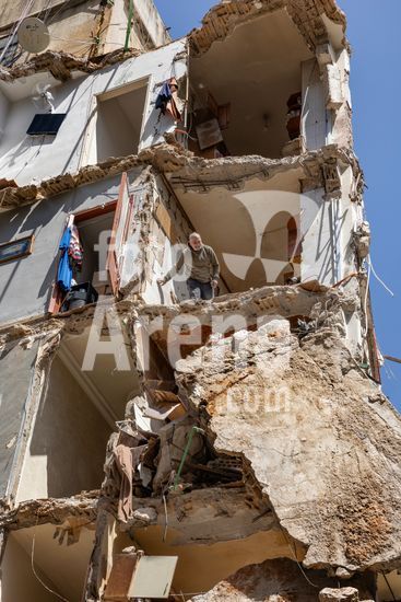 ny140426110313 A Lebanese man looks down from a destroyed building as workers and relatives continue the sixth day of searching for missing victims at the site of an Israeli airstrike that hit a residential building in Beirut, April 14, 2026. (David Guttenfelder/The New York Times/Fotoarena)