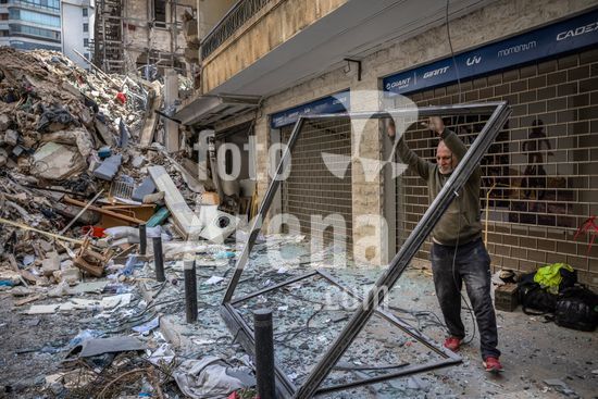 ny140426110211 A Lebanese man removes debris from a destroyed building at the site of an Israeli airstrike last week that hit a residential building in Beirut, April 14, 2026. (David Guttenfelder/The New York Times/Fotoarena)