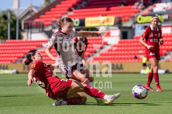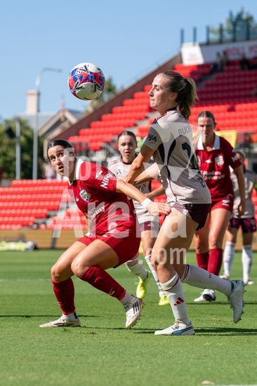2863022 Adriana Taranto (15 Adelaide United) e Ella Buchanan (14 Western Sydney Wanderers) disputam a bola durante a partida da Ninja A-League Feminina entre Adelaide United e Western Sydney Wanderers no Coopers Stadium em Adelaide, Australia. (Noe Llamas / SPP)