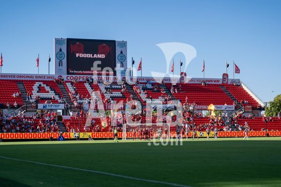 2863008 Torcedores do Adelaide United comemoram o quinto gol de sua equipe durante a partida da Ninja A-League Feminina entre Adelaide United e Western Sydney Wanderers no Coopers Stadium em Adelaide, Australia. (Noe Llamas / SPP)