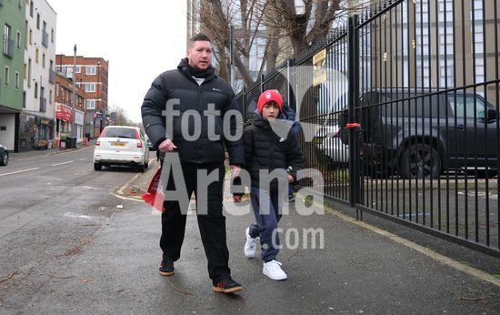 2863010 Torcedores do Nottingham Forest chegando ao estadio antes do inicio da partida de futebol da Premier League entre Nottingham Forest e Manchester City no City Ground, em Nottingham. (Paul Bonser/Sports Press Photo / SPP)