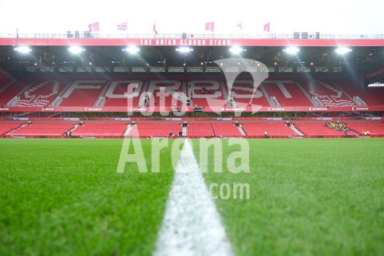 2863012 A arquibancada Brian Clough antes do pontape inicial da partida de futebol da Premier League entre Nottingham Forest e Manchester City no City Ground em Nottingham. (Paul Bonser/Sports Press Photo / SPP)