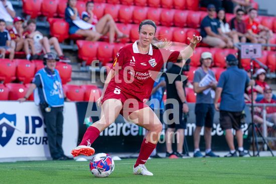 2863015 Emily Condon (8 Adelaide United) controla a bola durante o jogo da Ninja A-League Feminina entre Adelaide United e Western Sydney Wanderers no Coopers Stadium em Adelaide, Australia. (Noe Llamas / SPP)