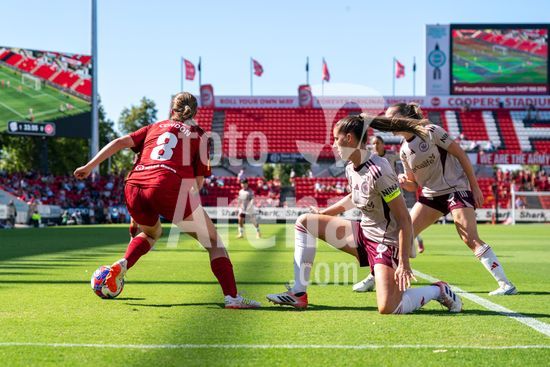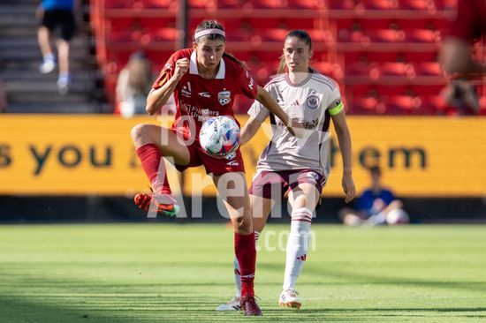 2863028 Erin Healy (22 Adelaide United) controla a bola sob pressao de Amy Harrison (7 Western Sydney Wanderers) durante o jogo da Ninja A-League Feminina entre Adelaide United e Western Sydney Wanderers no Coopers Stadium em Adelaide, Australia. (Noe Llamas / SPP)
